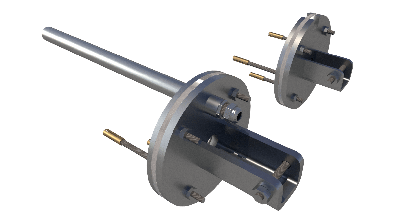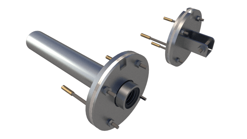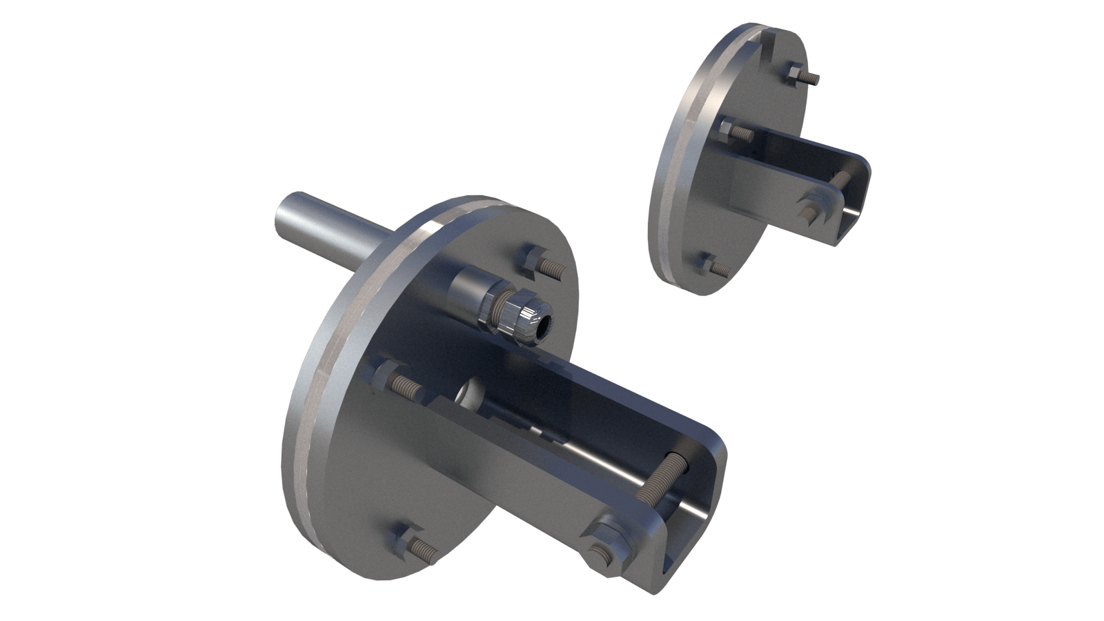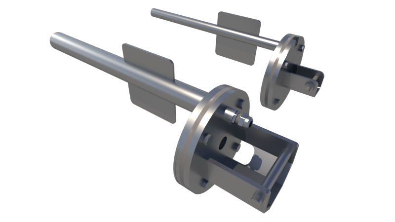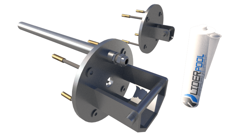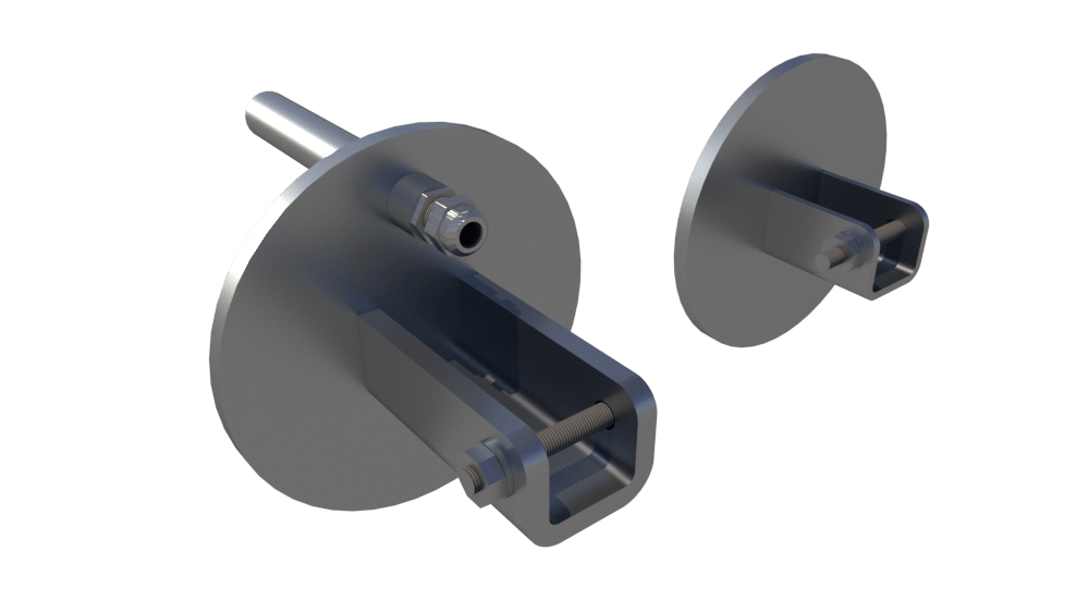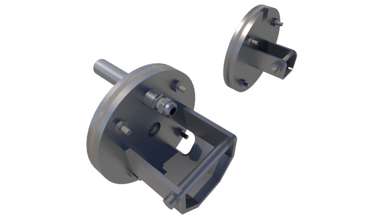 Complete stainless steel 316L flange set with cable cover, shaft axis at 44–115 cm (customizable).