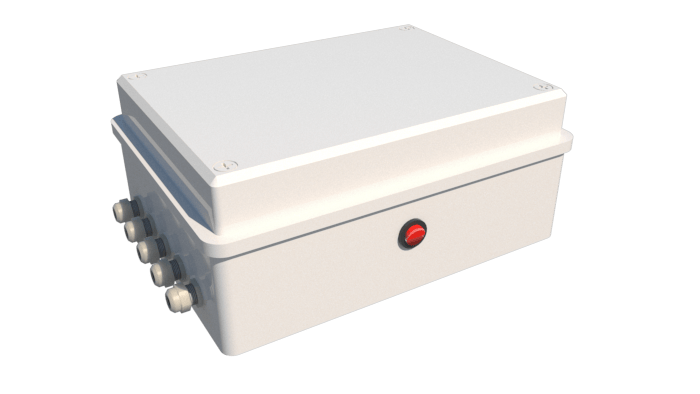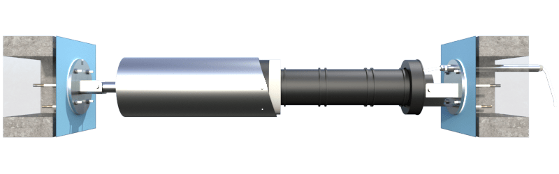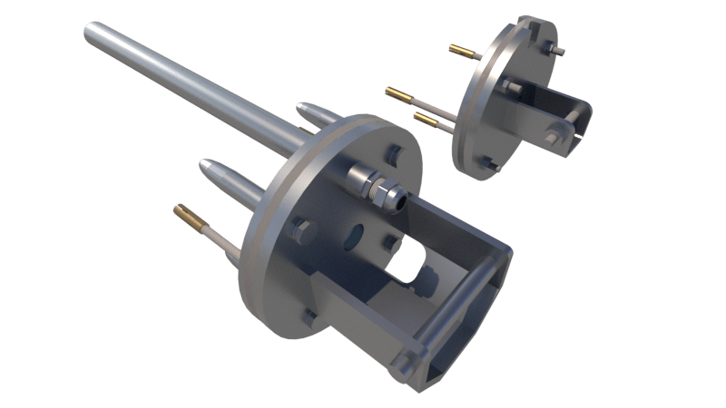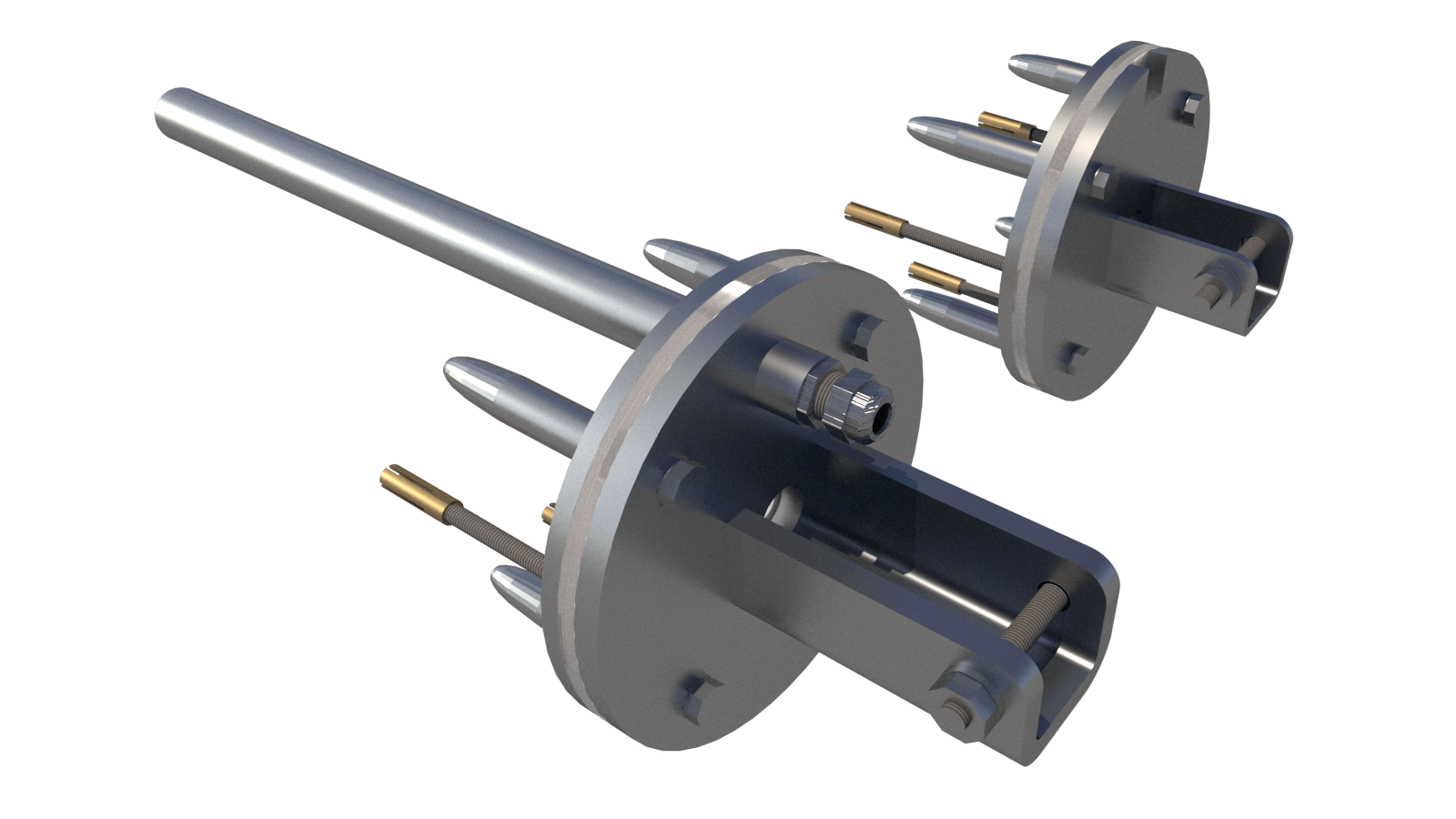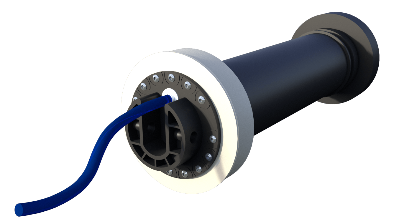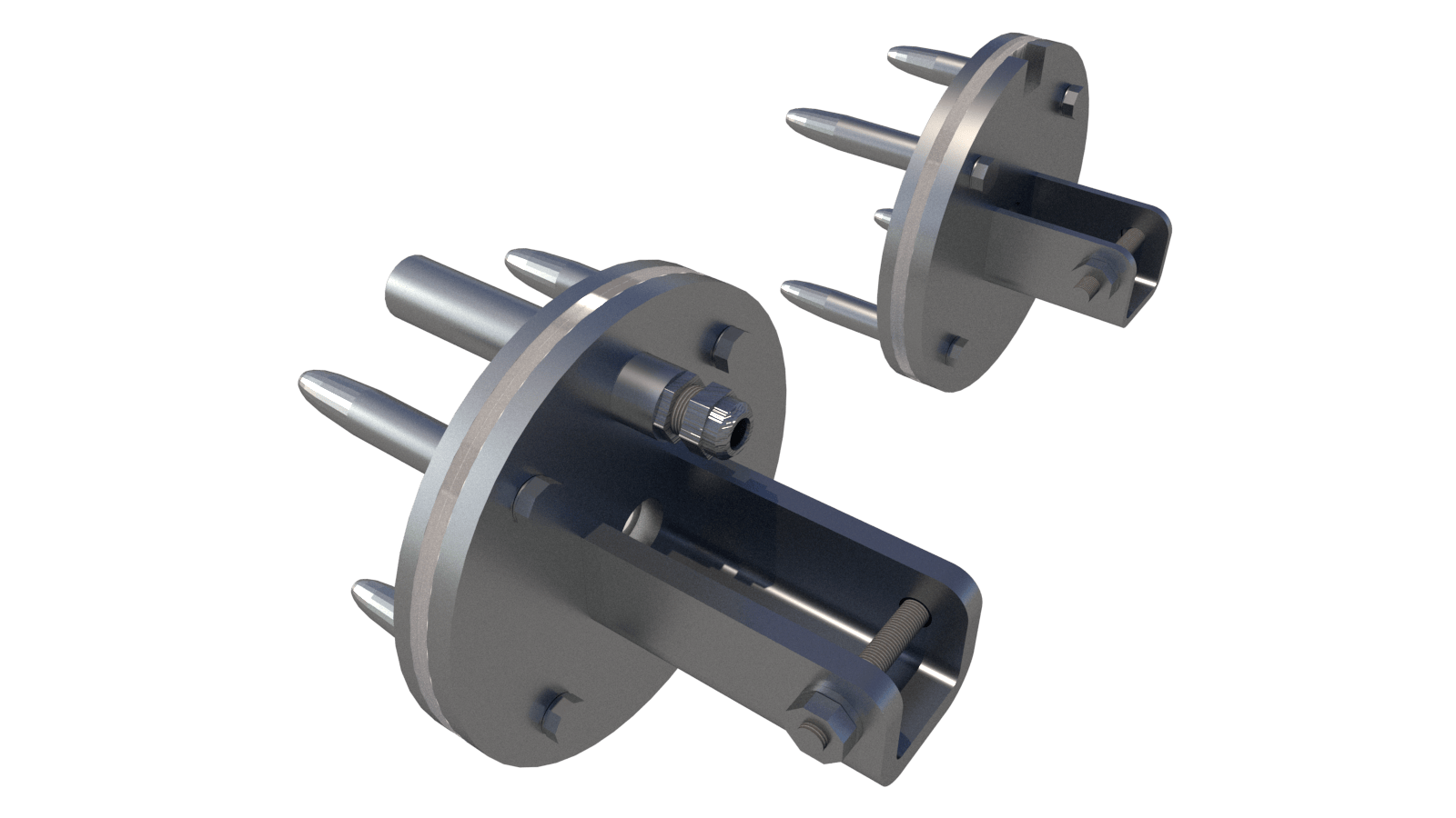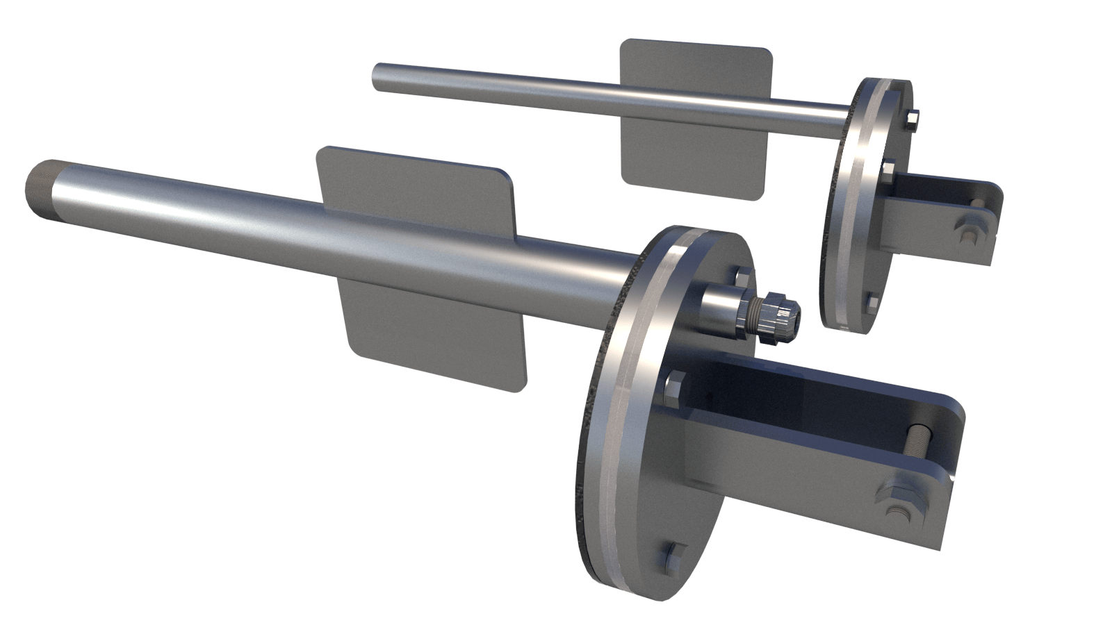 Complete stainless steel 316L flange set with cable cover, shaft axis at 44–115 cm (customizable).