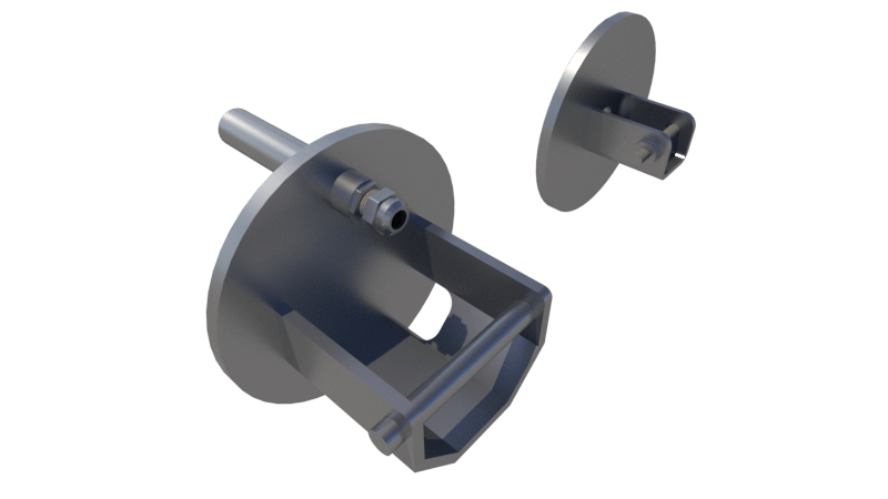 Complete stainless steel 316L flange set with cable cover, shaft axis at 43 cm height.