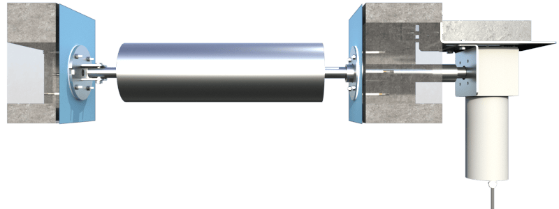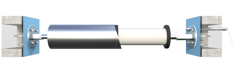 Complete stainless steel 316L flange set for shaft exit through pool wall – external motor.